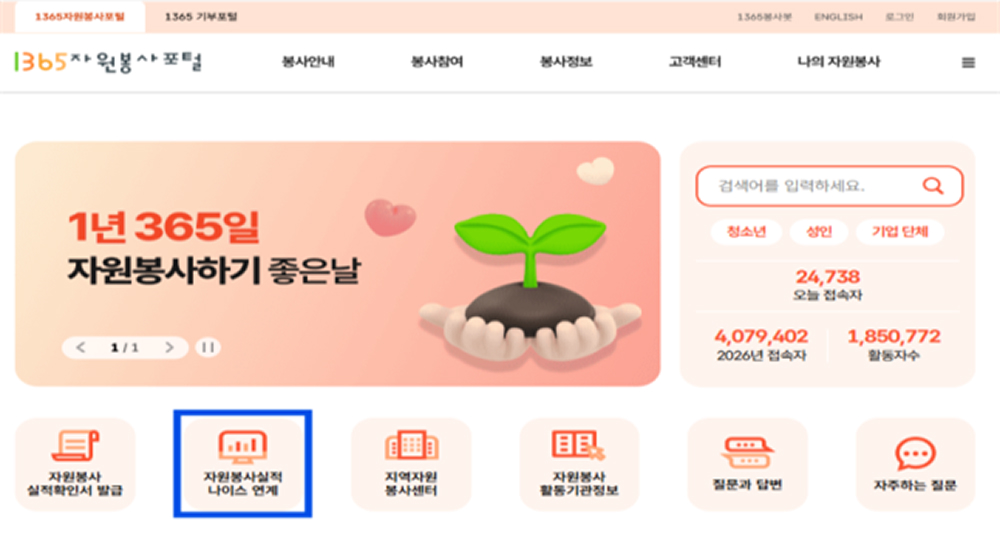 [자원봉사실적 나이스연계] 클릭